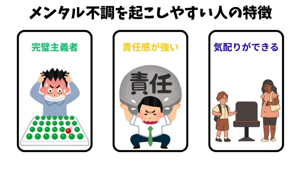 はじめに、メンタル不調を起こしやすい人の特徴を紹介します。
