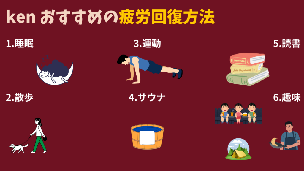 次の項目では僕がおすすめする、具体的な疲労回復方法を紹介します。